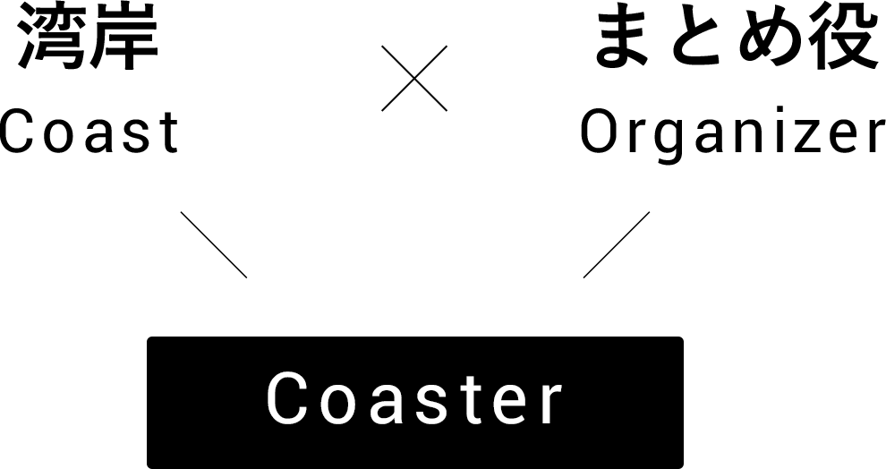 Coasterという社名には、湾岸=Coast(Coast)のまとめ役=Organizer(er)という意味が込められています。